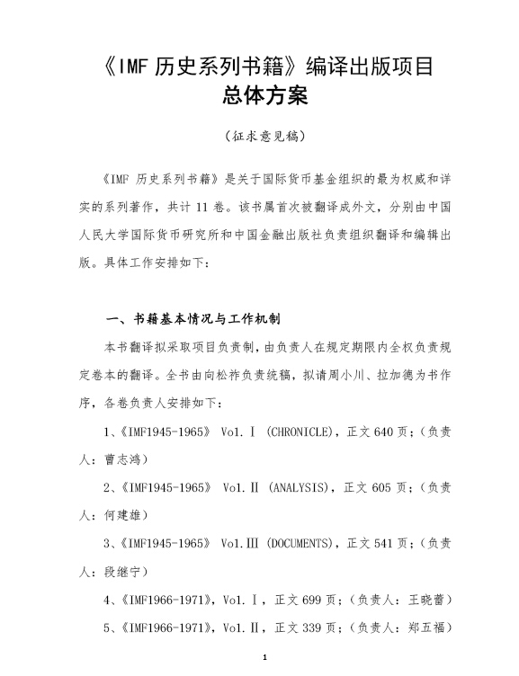 图为《IMF历史系列书籍》编译出版项目总体方案截图
