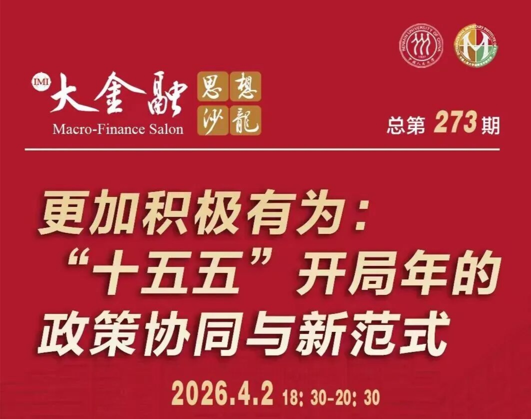 2026年4月2日,由中国人民大学深圳研究院[社会科学高等研究院(深圳)]主办,中国人民大学国际货币研究所(IMI)、中国人民大学深圳金融高等研究院承办的“大金融思想沙龙”(总第273期)成功举行。本次会议的主题为“更加积极有为:‘十五五’开局年的政策协同与新范式”。