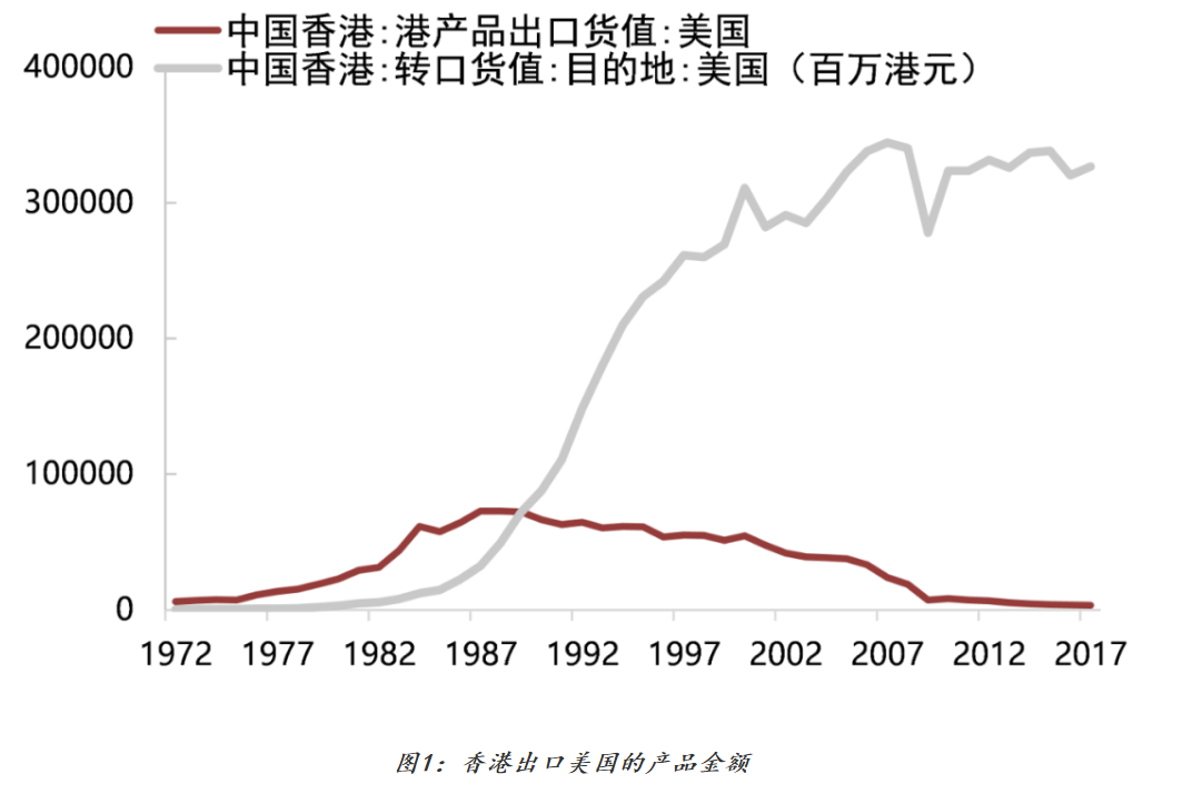 北京时间5月30日凌晨,美国总统特朗普宣布将调整对中国香港特别行政区的部分政策,表示“将采取行动,取消香港作为中国一个单独的海关和旅游地区所享有的优惠待遇”。美国对香港的特殊政策最主要有三个:一是,香港的独立关税地位;二是,香港可以获得美国的技术转让;三是,美元与港币可以自由兑换。其他还有一些政策,包括鼓励美国公司在香港投资、承认香港护照等,这些都不是很重要。我们认为,后续美国可能取消香港独立关税地位,但不太可能终止美元与港币的自由兑换。美国调整对香港的特殊政策,目前看只是一个“雷声大雨点小”的行为,短期内只对市场情绪有些扰动,金融市场在特朗普讲话后纷纷转强(即便幅度有限)就是一个例证。 首先看香港的独立关税地位问题。香港和美国之间的贸易基本是零关税。香港出口美国的货物大部分是转口货物,香港本地产品出口美国的只有不到40亿港币,占香港GDP的比例只有0.13%(图1)。因此,若美国对香港加征关税,对香港本地的出口基本上没有太大影响。而香港从美国进口的货物超过2000亿港币(图2),是美国最大的贸易顺差地区之一,主要货物是酒类、肉类和农产品。香港是否对美国加征关税由香港特区政府所决定,如果香港也对美国产品加征关税,那对美国出口商的影响会很大,但考虑到香港自由港的定位“逆势”下不能变,所以不加征的可能性要高一些。