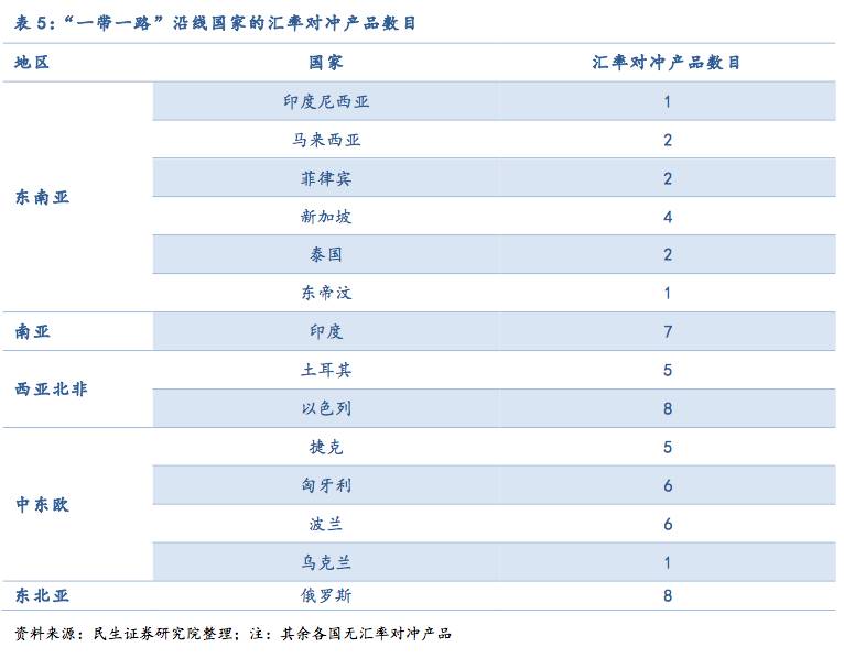 金融衍生品是对冲汇率风险的重要工具。从汇率风险对冲产品数量来看,“一带一路”沿线国家中,