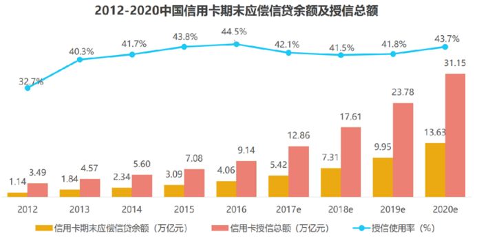 2019年,我国信用卡(含信贷合一)发卡量已经达到6.7亿张,中国信用卡总发卡量在2011-2020年期间以12%的年增长率增长,到2020年,信用卡发卡数量预计将达到7.4亿张,届时中国城市里近10亿的消费人口将催生出世界上最大的信用卡需求市场。