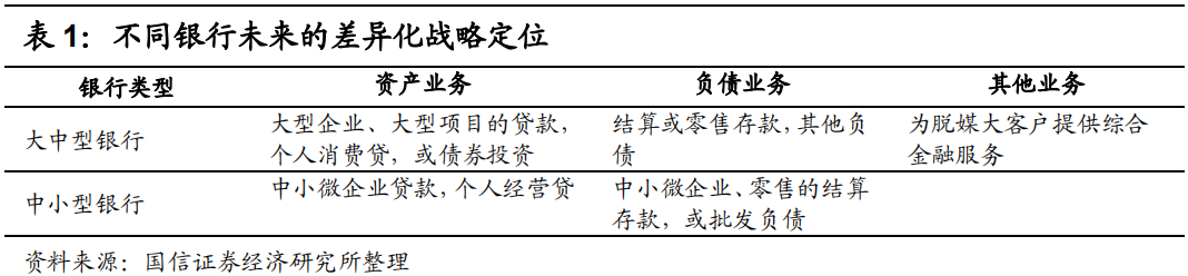 国际通行的模式,是大小银行分化,大银行从事相对标准的优质企业、个人的业务,但同时借助自己的渠道、科技和牌照优势,从事综合化经营,为大型客户提供全方位金融服务。而中小银行则从事高度非标准化的中小微企业等业务。