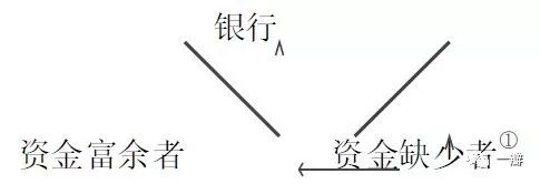 货币银行理论从这种“资金”的思想出发, 还产生了“银行是金融中介” 的理论:“`金融' 即资金融通, 而`金融部门' 就是支持或中介资金运动的那些机构和个人的总和。这里的`资金' 既可以是实际的(如可贷资金理论中的`资金' ), 也可以是名义的(普通人日常所说的资金)”(骆玉鼎, 1998)。“金融中介机构从贷款—储蓄者借得资金, 然后向借款—支付者发放贷款, 从而实现其中介职能” 。由此派生出了直接金融和间接金融的理论, “直接金融指借款者在金融市场上从贷款者借取资金,间接金融指金融中介机构居于贷款—储蓄者与借款—支付者之间, 帮助转换资金”(Fraderic S .Mishkin, 1995)。“间接融资关系链的构成包括存款人、金融机构(银行)和借款人三方。在存款交易中, 放款人是余钱者(储户)、借款人是金融机构(银行);在贷款交易中, 放款人是银行, 借款人是缺钱者(企业)(韩平, 2000)。对于非银行公众来说, 存在着资金富余者和资金缺少者, 但这两者与银行的关系却并非是: