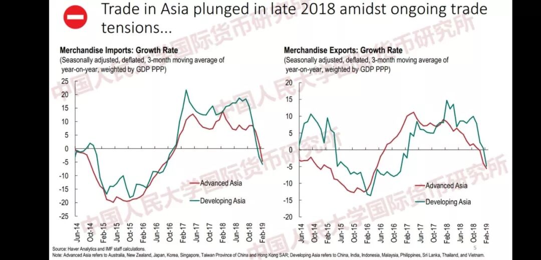 谈到中国,此前中国每年的GDP增长率能够达到7%-8%,而现在下降到了6.3%。考虑到当前中国经济总量如此庞大,即便增长率略有下降,也依然可以占到全球经济增量的三分之一,加上印度在在全球经济增量中15%的比例,两国经济增量已占到全球经济增量的50%以上。近期IMF将中国的预期经济增长率由6.2%上调至6.3%,而该数据在2018年7月从6.4%下调至6.2%,其根本原因是不断升级的中美贸易摩擦,当时双方威胁增收的惩罚性关税一度达到500亿美元,不过最终并为真正实现。IMF原先预测这样的贸易摩擦会给中国经济增长带来0.7% 的负面影响,但实际影响缩窄到了0.3%,此外中国激励措施的效果也远超预期,为中国经济带来了0.7%的推进效应。与此同时,外部需求的变化也为中国带来了0.5%的负面影响。综合考虑,中国经济增速下滑仅有0.1%,而不是原先预期的0.2%。另一方面,如果中美贸易谈判进展顺利,该方面的负面影响将会缩小到0。此举会为中国带来经济上行的动力,考虑到中国激励措施本身的滞后性,中国经济在今年五月还可能有进一步上升的空间。不过即使在该种情况下,中国也应减少自身的经济激励力度以保证中长期的财政稳定性,而不是仅仅关注经济的增速,希望中国能够从高速增长转向高质量的发展。 此外,中美贸易谈判目前还有很多不确定性,如果进展不尽如人意,将难免会对亚太地区的经济带来下行的压力。反之,如果中美达成贸易协定,将会加强整个亚太地区金融市场的信心,总体来说是利好于整个亚太地区。另外需要关注的一个点是,目前中美贸易协定的内容还不得而知,如果中国同意增加从美国进口的商品数量从而减少双边贸易顺差,就势必会减少中国从其他国家的进口,从而带来贸易转移现象。一般情况下,中国可能会大量进口美国的飞机、农产品及能源产品。以飞机为例,中国55%以上的飞机是从美国进口的,还有22%和16%来自法国和德国,如果贸易转移现象真的发生,上述欧洲国家将受到较大影响。同理,巴西的农产品(大豆),日本、韩国、中国台北和马来西亚的制造业也将受到不同程度的影响。总体来说,中美达成贸易协定是件好事,但我们也要看到此举带来的一些不利影响。中国市场的进一步开放应当一视同仁,这种包容式的开放有利于中国经济长期增长,也有助于其通过多边主义解决问题。