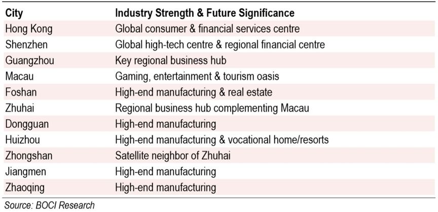 For the rest of GBA cities, most of them are expected to become high-end manufacturing bases for both China and the world, with increasing focuses on the high-value end of the supply chain and the downstream end closer to consumers.
