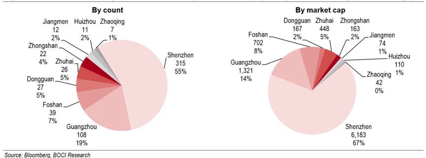 The Guangdong-HK-Macau Greater Bay Area: Mapping out the Region’s Listed CompaniesBy Steve Wang*SummaryGiven the significance of public listed companies to a local municipality in terms of economy and capital market, we look into the relative strength and competitiveness of each of the cities in the Guangdong-HK-Macau Greater Bay Area (GBA) through mapping out the profiles and characteristics of all the domestic and overseas listed firms from the region.